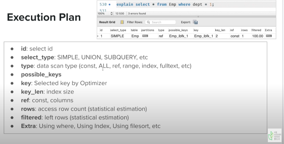- explane select * from Emp where dept(key1) = 5 order by ename(key2);